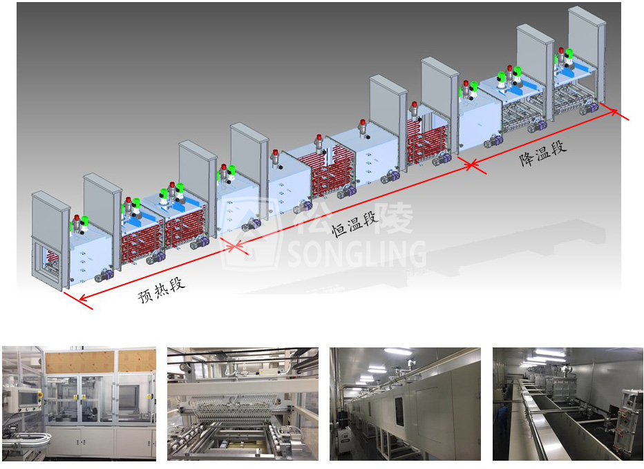 隧道式全自動真空烘烤線是根據(jù)客戶現(xiàn)有生產和工藝需要,專門開發(fā)的一款電池注液前烘烤的自動真空隧道式流水線;如果更換相關工裝夾具,同時也可以進行極卷的烘烤和電芯規(guī)格烘烤。